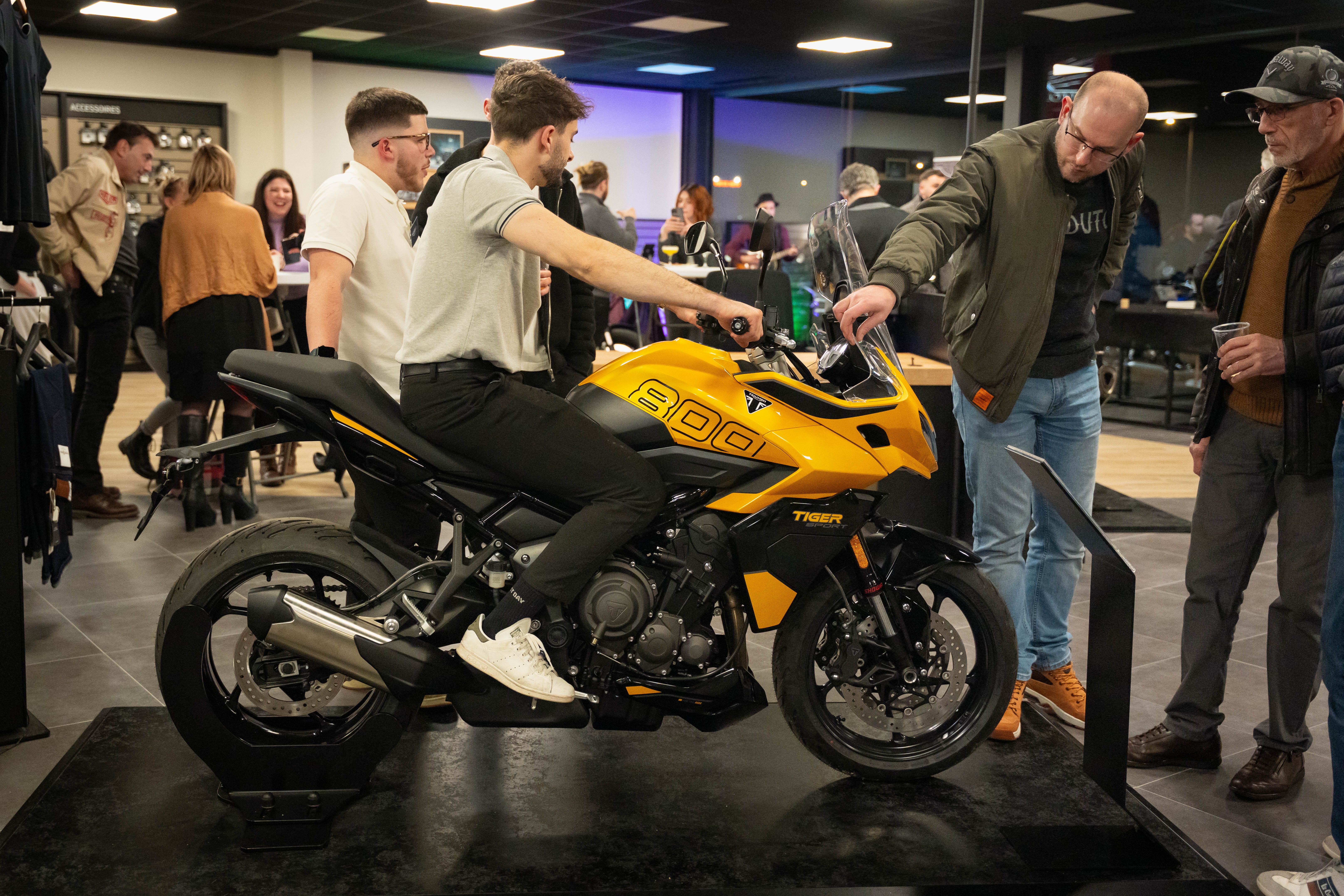 Pour marquer cette soirée d’inauguration, nos invités ont assisté à la révélation de la Nouvelle Triumph Tiger Sport 800, un modèle qui incarne performance et innovation. L'événement a été rythmé par une animation musicale en live, un bar à cocktails aux couleurs de Triumph et des échanges conviviaux autour des modèles exposés, offrant à chacun l’opportunité de partager sa passion et ses impressions.